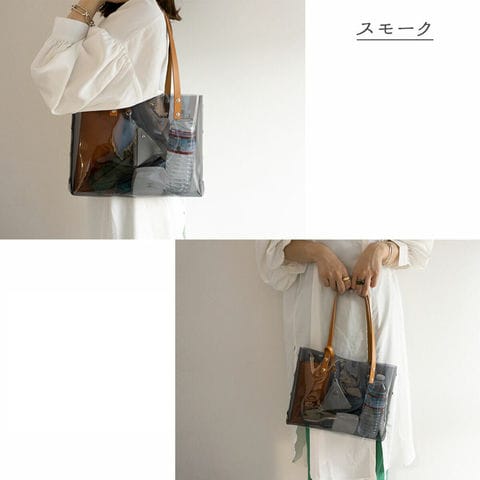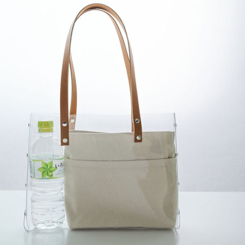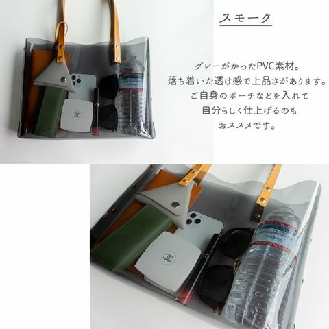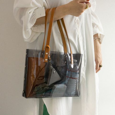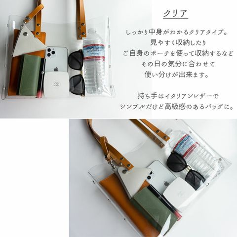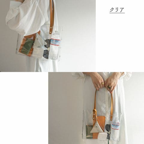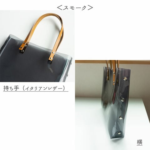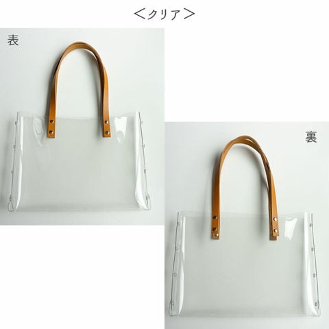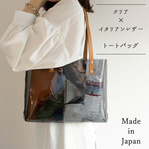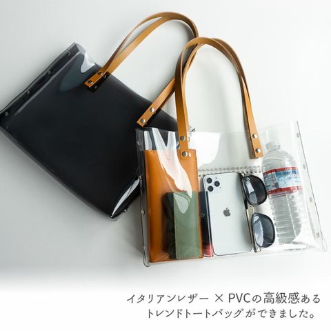 トートバッグ 【 クリア × レザー 】 PVC イタリアンレザー クリア