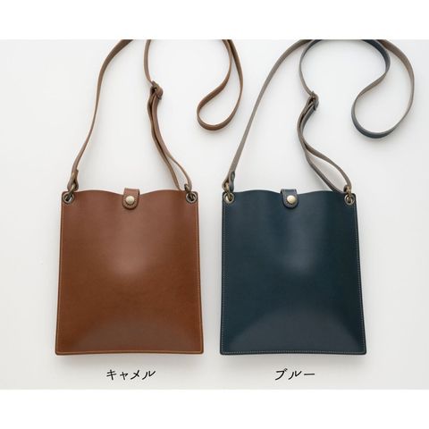 本革 栃木レザー 【オイルサコッシュ スクエア 】 ヌメ革 ショルダーバッグ スマホポシェット ブルー