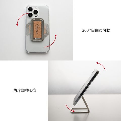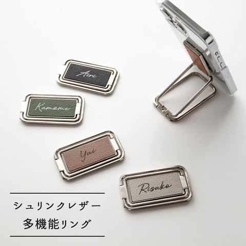 名入れ スマホ多機能リング 【 シュリンクレザー 】 縦動画対応 スマホリング スマホスタンド ピーチピンク