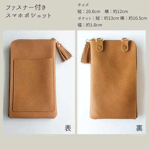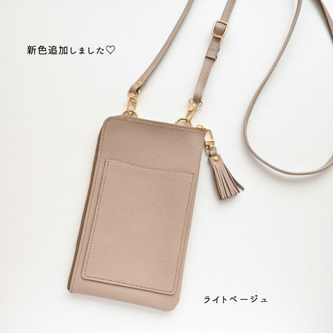 【 シュリンクレザー スマホポシェット ファスナー付き 】ショルダーバッグ スマホケース ライトグレー