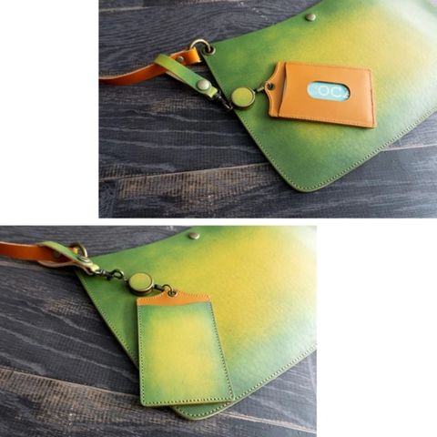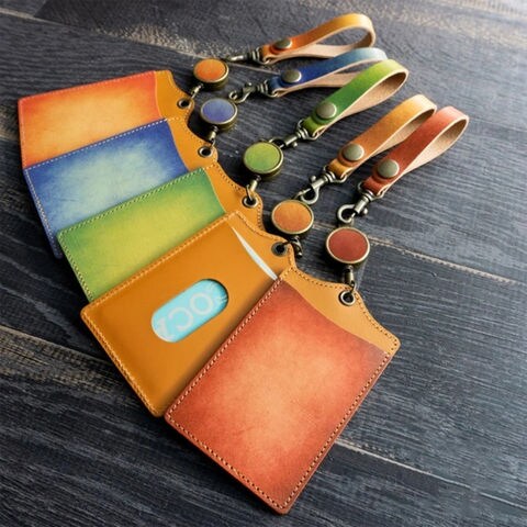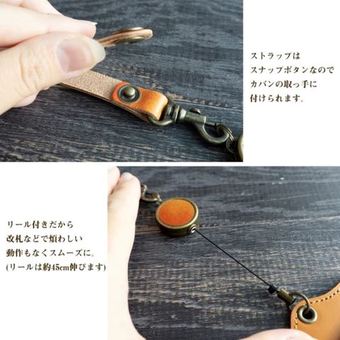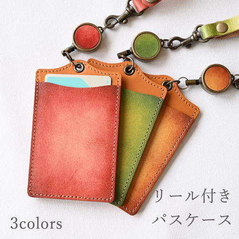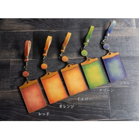【姫路レザー】パスケース リール付き<グラデーションレザー> 日本製 本革 オレンジ MA948