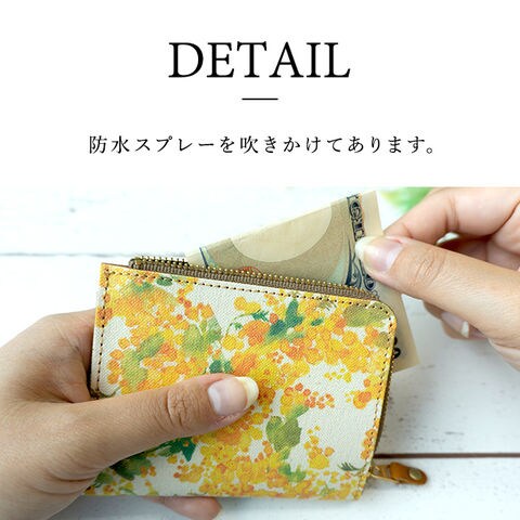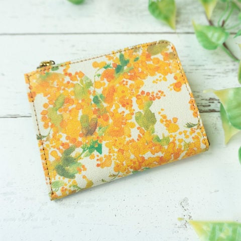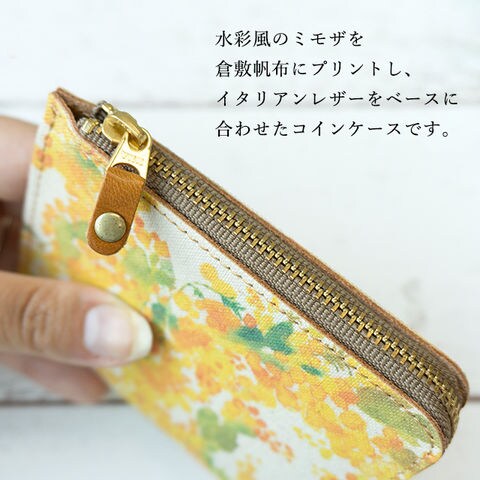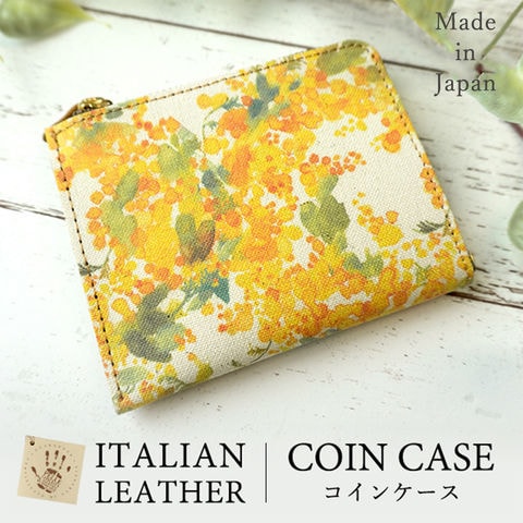 ミニ財布 コインケース 【水彩風 ミモザ コンパクトコインケース 】本革 レザー 財布 小銭 入れ
