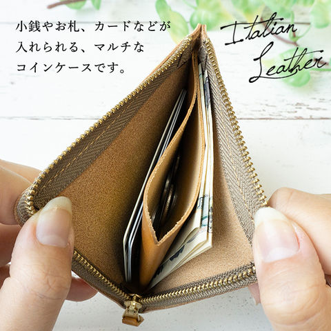 コインケースのベースや引手部分はイタリアンレザーを使用。