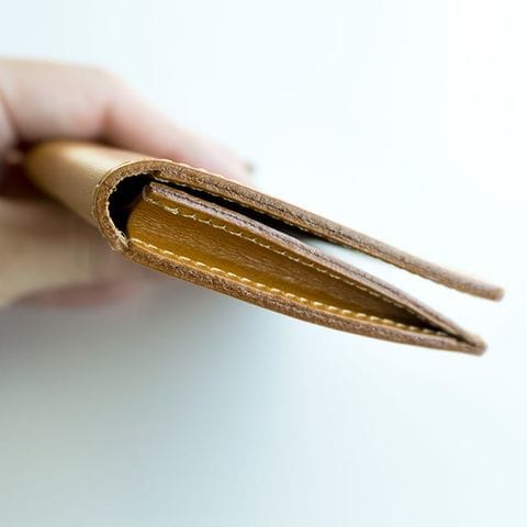 長い時間をかけ、裏面まで丁寧にしっかり染まった革は、