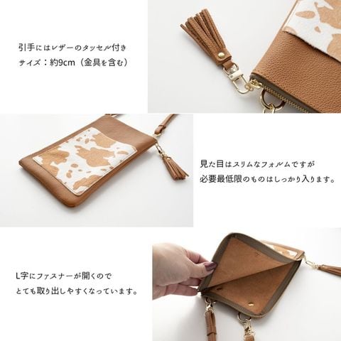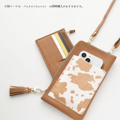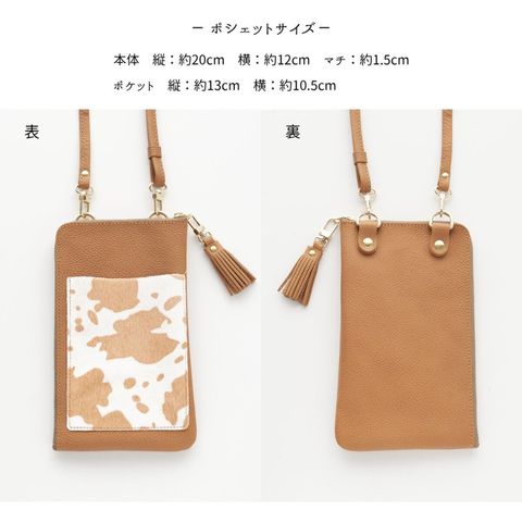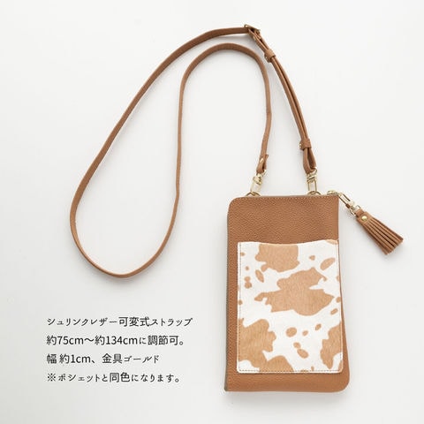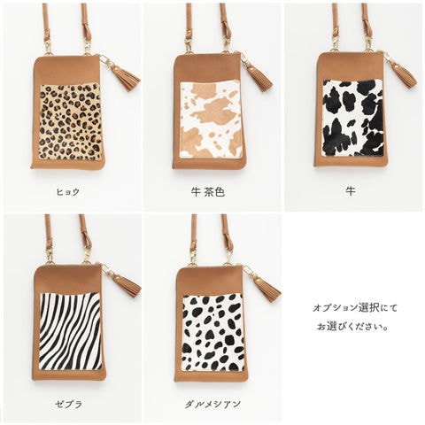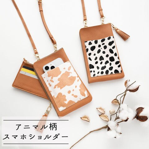 ファスナー付き スマホポシェット 【 アニマル柄 】スマホショルダー ポシェット ショルダーバッグ 牛 茶色