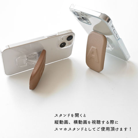 イニシャル入り スマホスタンド 【 ころん シュリンクレザー 】 縦動画 横動画 スマホグリップ 落下防止 誕生日 記念日 贈り物 ギフト プレゼント 名入れ無料 ダスティピンク