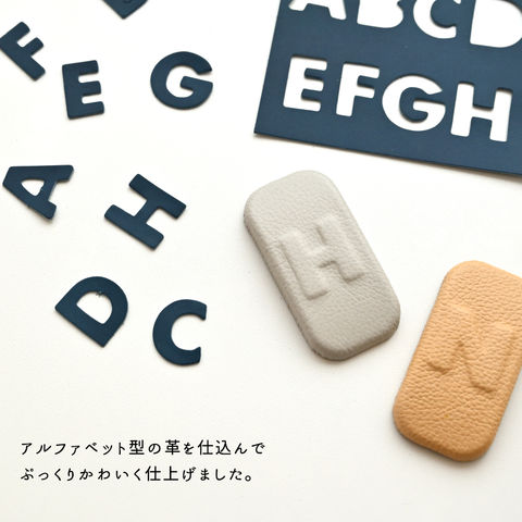 イニシャルはアルファベット型のレザーを仕込んで