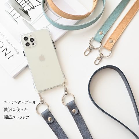 シュリンクレザーを贅沢に使った幅広ストラップ