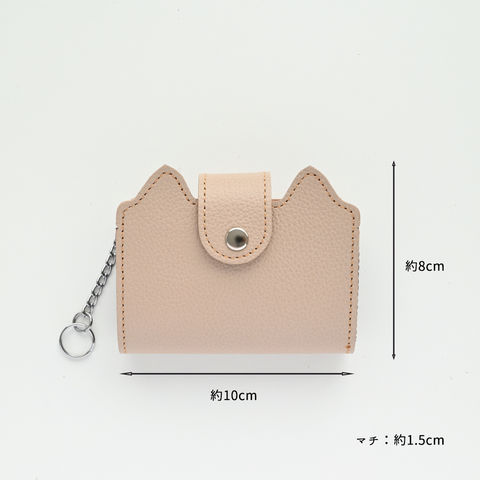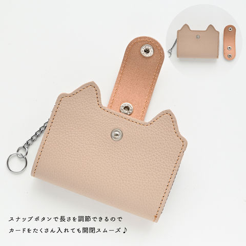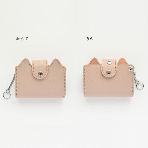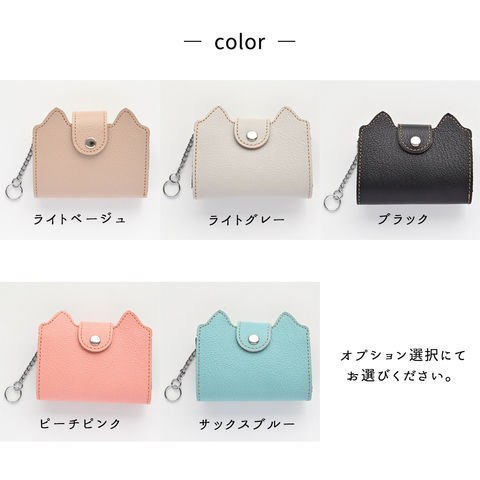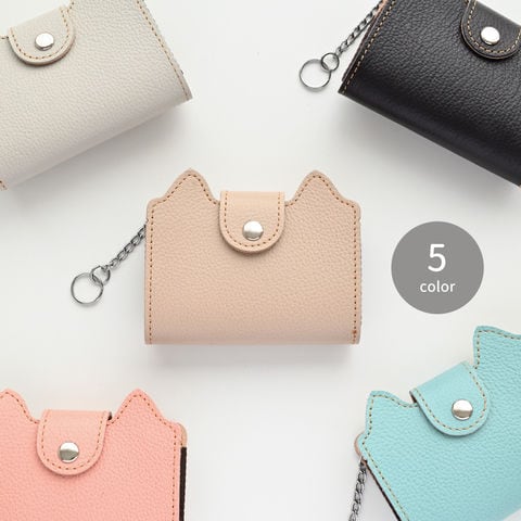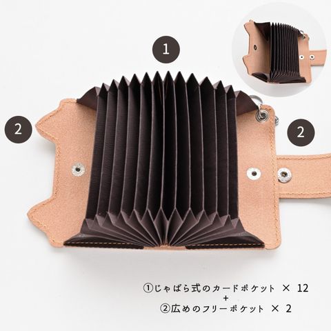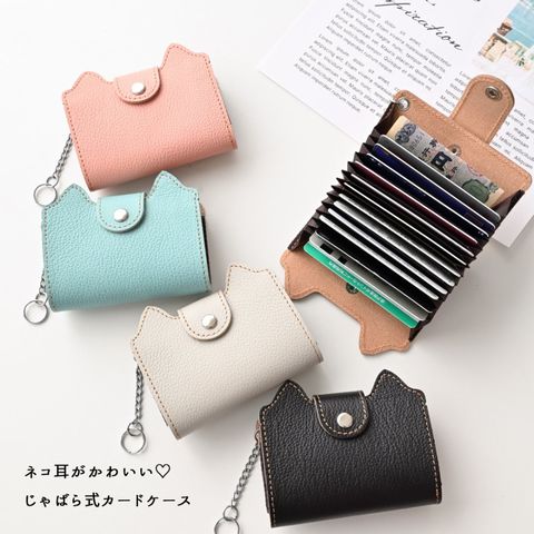 ネコ耳付き じゃばら式カードケース 小銭入れ付き 【 newシュリンクレザー 】 ミニ財布 本革 くすみカラー ねこ アニマル プレゼント ギフト 贈り物 誕生日 記念日 ブラック