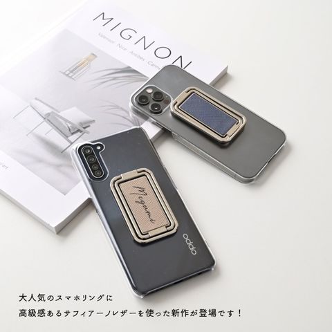 名入れ スマホ多機能リング 【 サフィアーノレザー 】 縦動画 横動画 スマホリング スマホスタンド 自撮り 誕生日 記念日 プレゼント ギフト 贈り物 名入れ無料 ネイビー