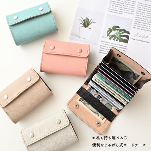 じゃばら式カードケース 【 シュリンクレザー 】 ミニ財布 本革 くすみカラー お札二つ折り おしゃれ プレゼント ギフト 贈り物 誕生日 記念日 ブラック