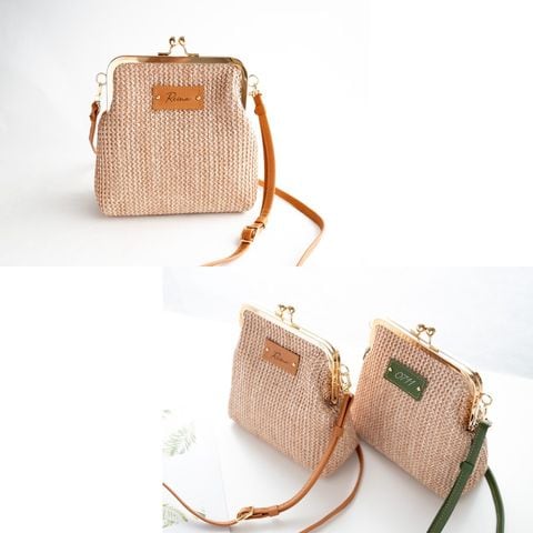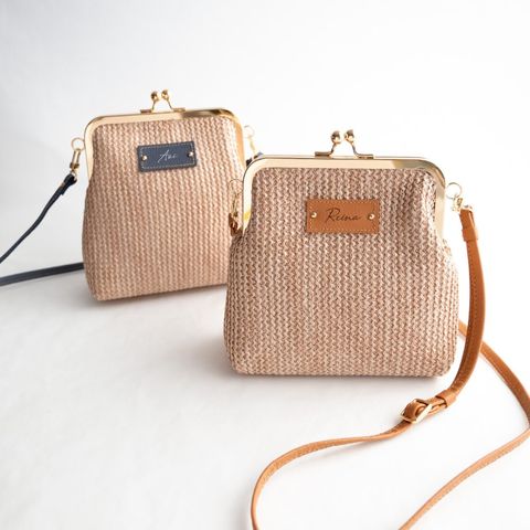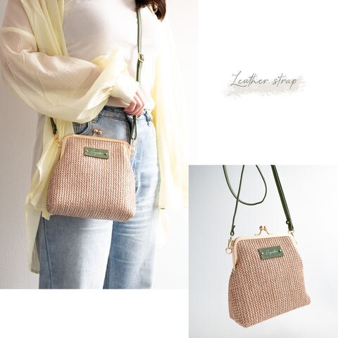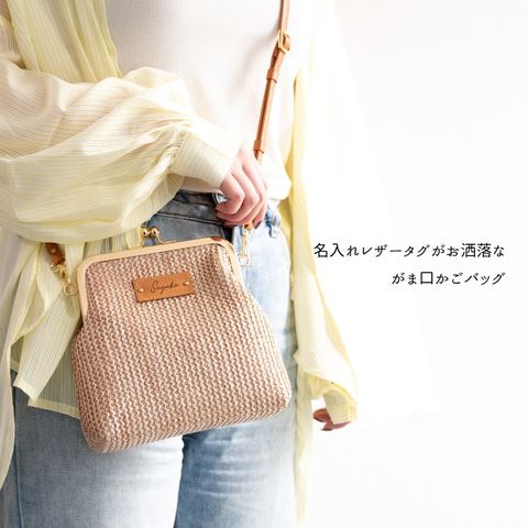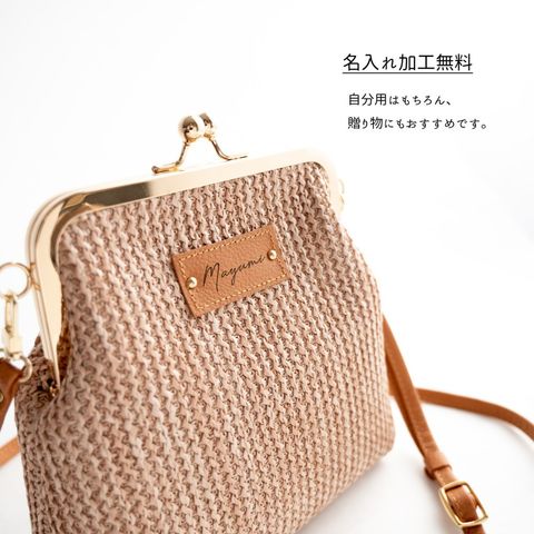 名入れ タグ付き 【 がま口 かごバッグ 】 本革 ショルダーバッグ ポシェット ベージュ