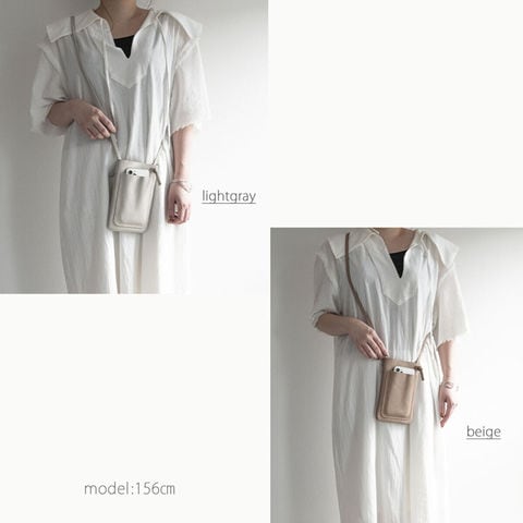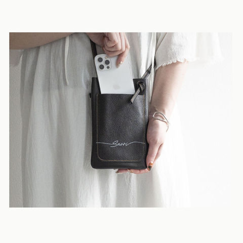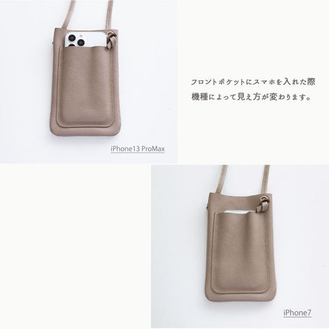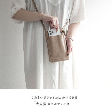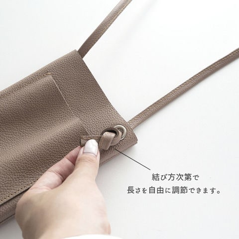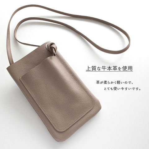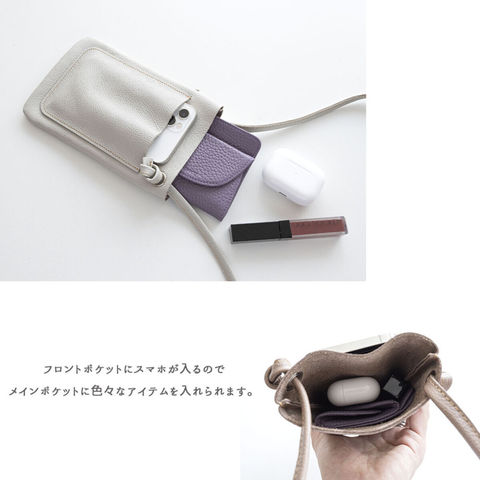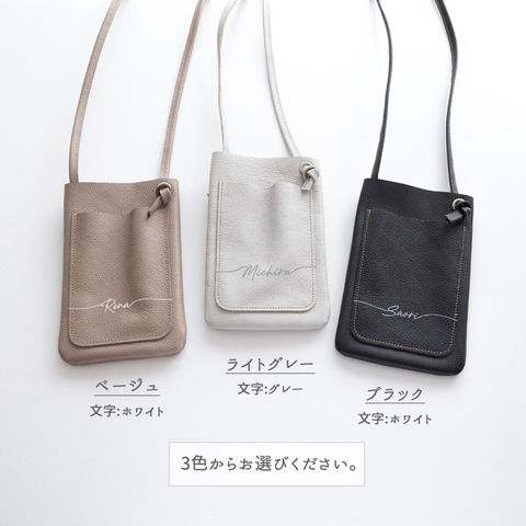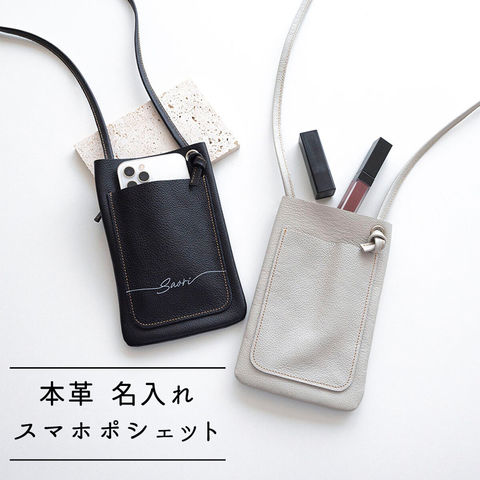 スマホポシェット ポケット付き 【 本革 シュリンクレザー 名入れ 】 スマホショルダー 文字入れ スマホポーチ ライトグレー