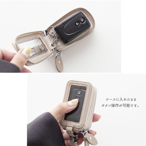クリアの窓があるので、スマートキーのボタン操作がそのままできます。