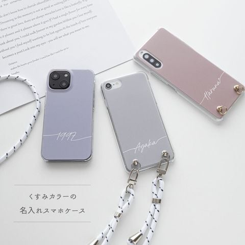 スマホケース 多機種対応 ハードケース 【 くすみカラー 名入れ 】 スマホショルダー クリア 文字入れ 誕生日 記念日 贈り物 ギフト プレゼント 名入れ無料 サンドベージュ Galaxy S24