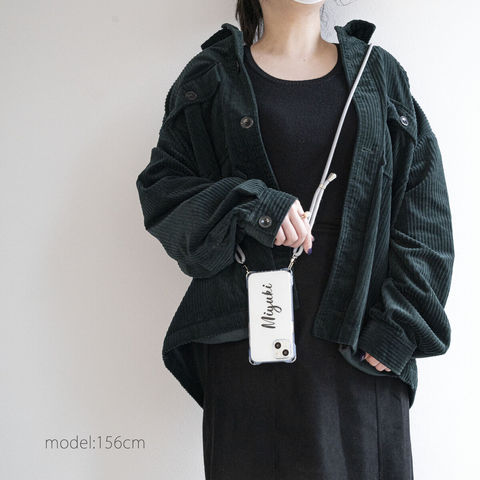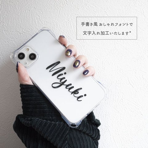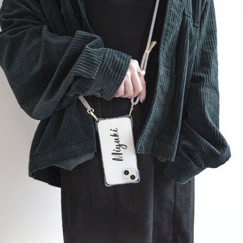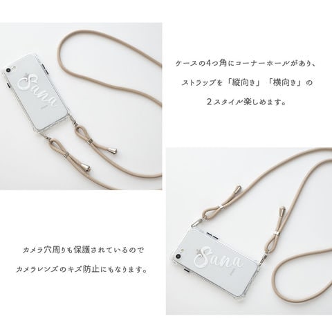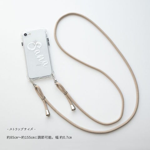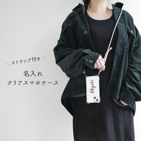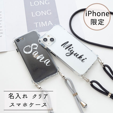 iPhone限定 スマホケース HMストラップ付 【 TPUクリアケース 手書き風 名入れ 】 スマホショルダー クリア 文字入れ 誕生日 記念日 贈り物 ギフト プレゼント 名入れ無料 ホワイト iPhone14 Pro Max