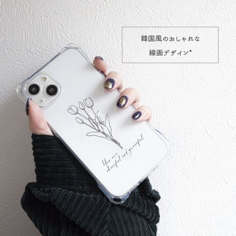 韓国風な線画のイラストをクリアケースにデザインしました。