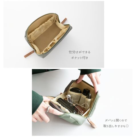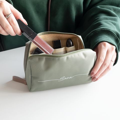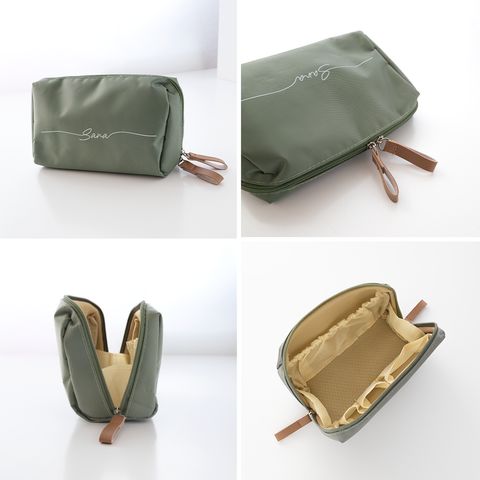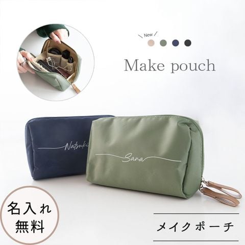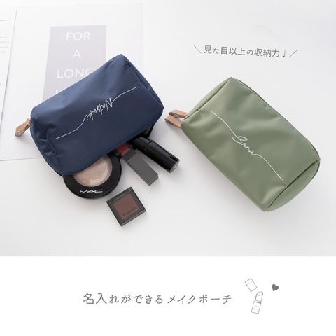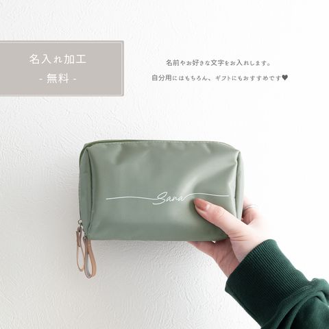 【 メイクポーチ 名入れ 】 コスメポーチ 化粧ポーチ トラベルポーチ カーキ