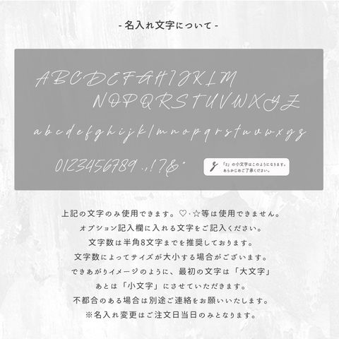 ・ご購入の際に、オプション記入欄に入れる文字の記入をお願いいたします。