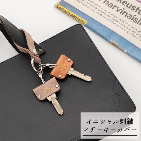 キーカバー 【 刺繍 イニシャル 2個セット 】 シュリンクレザー 名入れ ギフト 本革 レザー ゴールド 記念日 誕生日 贈り物 プレゼント 名入れ無料