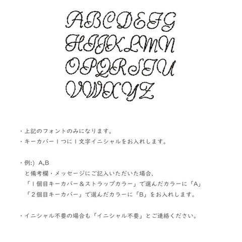 ●備考欄にて必ず【1個目キーカバー&ストラップカラー】【1個目イニシャル】【2個目キーカバー】【2個目イニシャル】をお選びください。