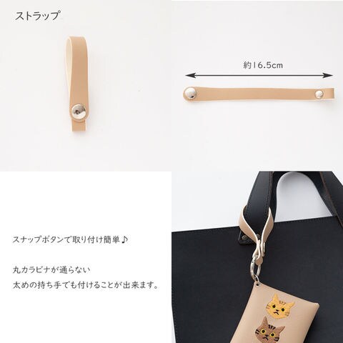 カラビナ付きでバッグやスマホショルダーなどに通せば便利にお使いいただけます。