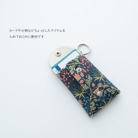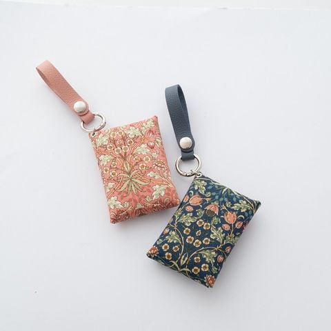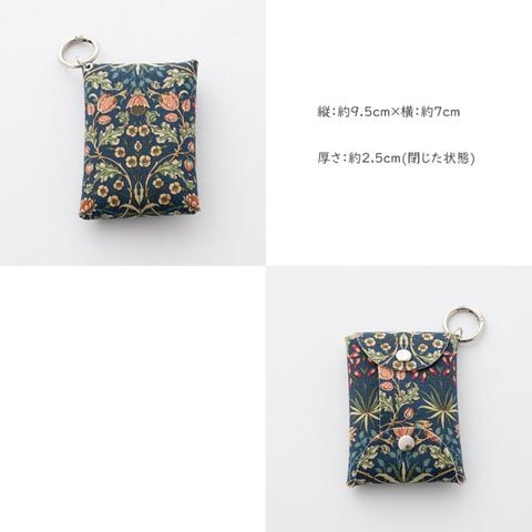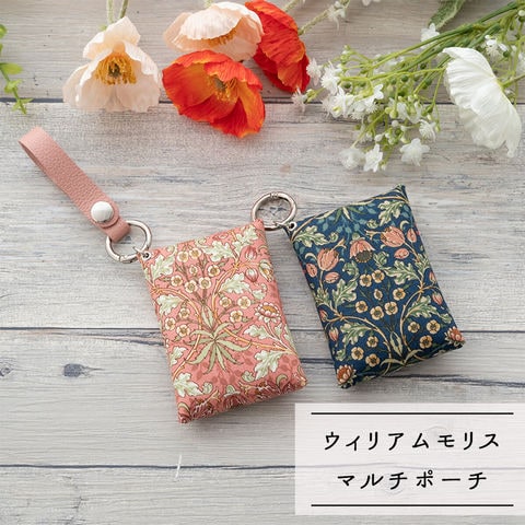 マルチポーチ ストラップ付き 【 ウィリアムモリス ヒヤシンス 】 カード 収納 小物入れ ポーチ ピンク ネイビー リバティ柄 クラシカル 誕生日 記念日 贈り物 ギフト プレゼント ヒヤシンス:ネイビー
