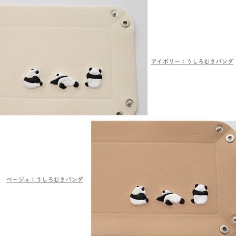 マルチトレイ 長方形 【 刺繍 パンダ 】 インテリア 玄関 収納 トレイ プチギフト ベージュ アニマル 小物入れ プレゼント ギフト 贈り物 誕生日 記念日 アイボリー:うしろむきパンダ