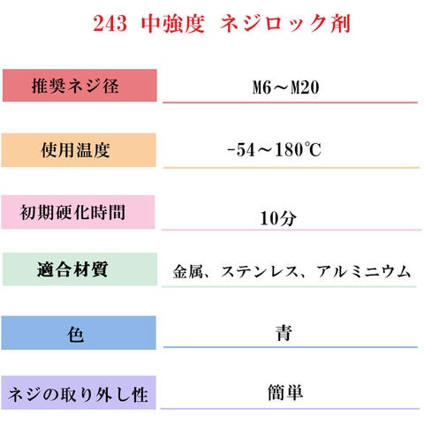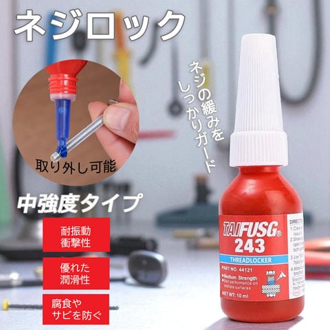 TAIFUSG 243 ネジゆるみ止め剤(スレッドロッカー/ネジロック剤) 中強度タイプ 10ml タイトボンド 金属 嫌気性接着剤 シーラント メタルロック接着剤 防錆 耐寒 耐熱 取り外し可能タイプ 単品 クリックポストOK