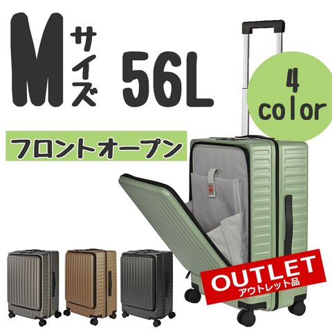 アウトレット品 フロントオープンキャリー アペルタライトキャリーケース Apertaライト ファスナータイプ Mサイズ アイスグリーン 5日間前後の旅行