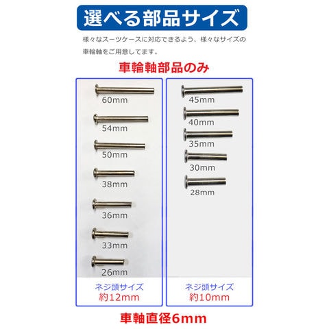 ※車軸のサイズはネジ頭を含まないサイズとなります※