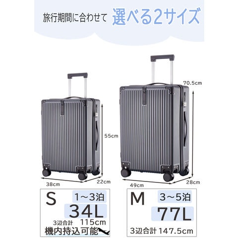 ✔ 機内持ち込み可能サイズで移動もスマート(Sサイズのみ)