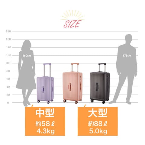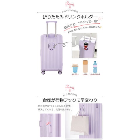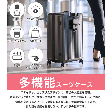 | その他 | ・防犯防止ファスナー搭載。 ・外寸はキャスター、ハンドルなどの全ての凹凸を含んだサイズになります。 ・荷物を預ける際は、ドリンクホルダーを畳んだ状態でお預けください。 ※島嶼部などで船便や特別な配送方法が必要な場合、別途中継料が発生する場合がございます。予めご了承ください。 |
