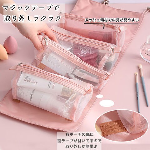 吊るせる トラベルポーチ 着脱ポーチ付き 4in1 コスメポーチ 化粧ポーチ メイクポーチ 洗面ポーチ 旅行ポーチ レディース 便利グッズ おしゃれ 旅行グッズ 温泉 出張 グリーン