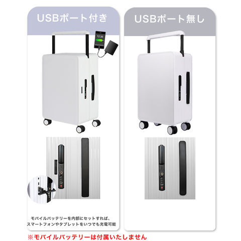 | その他 | ・インジェクション成型による高度な成形により高耐久を実現 ・USBポート付きはトップハンドル無し ・USBポート無しはトップハンドルあり ・外寸はキャスター、ハンドルなどの全ての凹凸を含んだサイズになります ※ ご注意 ※ USBポート無しとUSBポートありでは、内装の仕様や色が異なります。 ご確認の上、ご購入下さいませ。 |