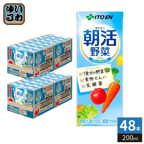 伊藤園 朝活野菜 200ml 紙パック 48本 (24本入×2 まとめ買い) 野菜ジュース 乳酸菌 食物繊維