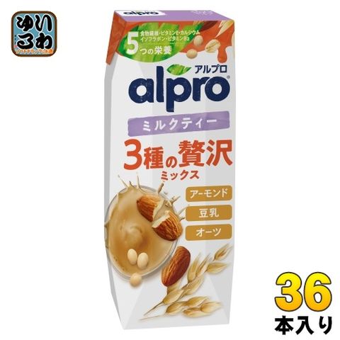 ダノンジャパン アルプロ 3種の贅沢ミックス ミルクティー 250ml 紙パック 36本 (18本入×2 まとめ買い) オーツ麦飲料 オーツミルク 植物性ミルク alpro 栄養機能食品 紅茶