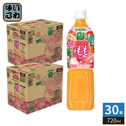 〔2月3日発売〕 カゴメ 野菜生活100 まろやか3種のももミックス 720ml ペットボトル 30本 (15本入×2 まとめ買い) 野菜ジュース 季節限定 フルーツミックス