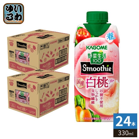カゴメ 野菜生活100 スムージー 国産白桃ミックス 330ml 紙パック 24本 (12本入×2 まとめ買い) 野菜ジュース Smoothie 砂糖不使用 春限定 季節限定