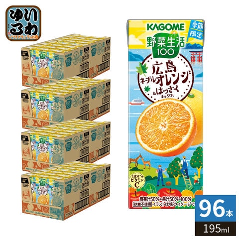 〔3月17日発売〕 カゴメ 野菜生活100 広島ネーブルオレンジ&はっさくミックス 195ml 紙パック 96本 (24本入×4 まとめ買い) 野菜ジュース 季節限定 果汁ミックス 砂糖不使用