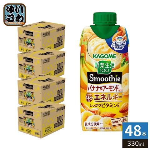 〔3月24日発売〕 カゴメ 野菜生活100 スムージー バナナ&アーモンドミックス 330ml 紙パック 48本 (12本入×4 まとめ買い) 野菜ジュース Smoothie 食物繊維 砂糖不使用