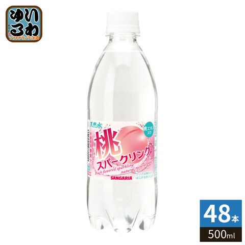サンガリア 天然水 桃スパークリング 500ml ペットボトル 48本 (24本入×2 まとめ買い) 炭酸飲料 天然水 桃風味