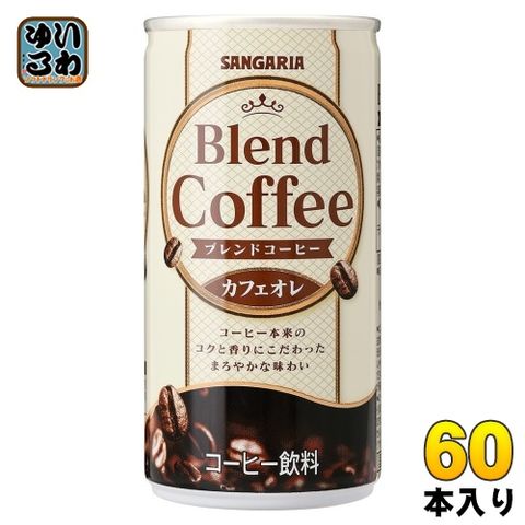 サンガリア ブレンドコーヒー カフェオレ 190g 缶 60本 (30本入×2 まとめ買い) コーヒー飲料 缶コーヒー 珈琲