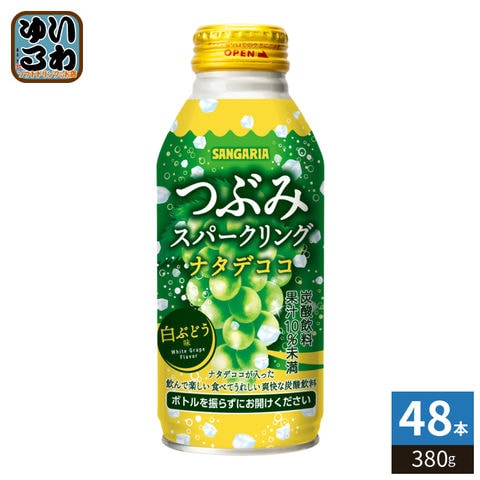 サンガリア つぶみ スパークリング ナタデココ 白ぶどう 380g ボトル缶 48本 (24本入×2 まとめ買い) 炭酸飲料 白ブドウ