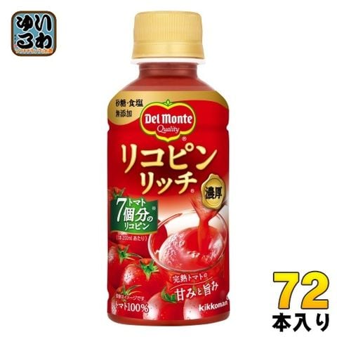デルモンテ リコピンリッチ トマト飲料 200ml ペットボトル 72本 (24本入×3 まとめ買い) トマトジュース 濃縮トマト飲料 GABA リコピン トマト100%