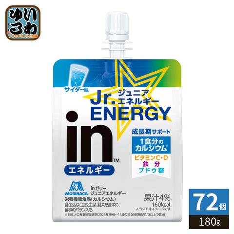 森永製菓 inゼリー ジュニアエネルギー サイダー 180g パウチ 72個 (36個入×2 まとめ買い) ゼリー飲料 成長期サポート 栄養機能食品