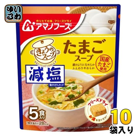 アマノフーズ フリーズドライ 減塩きょうのスープ たまごスープ 5食 10袋 (1袋入×10 まとめ買い) スープ FD インスタント 即席 個包装