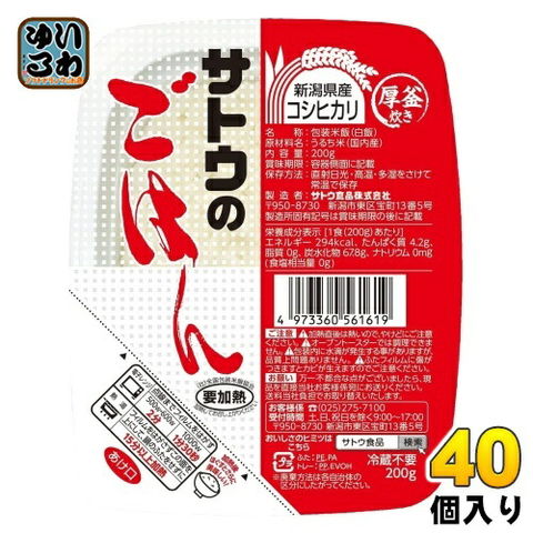 サトウ食品 サトウのごはん 新潟県産コシヒカリ 200gパック 20個入×2 まとめ買い レトルトご飯 パックご飯 こしひかり