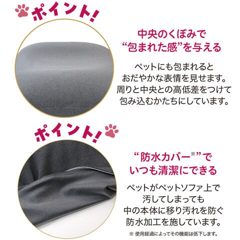 中央のくぼみで「包まれた感」を与えます。また、防水加工を施したカバーなので汚してしまっても安心です。