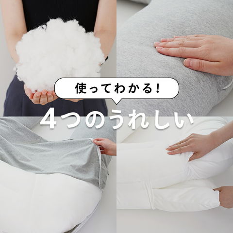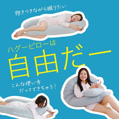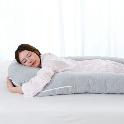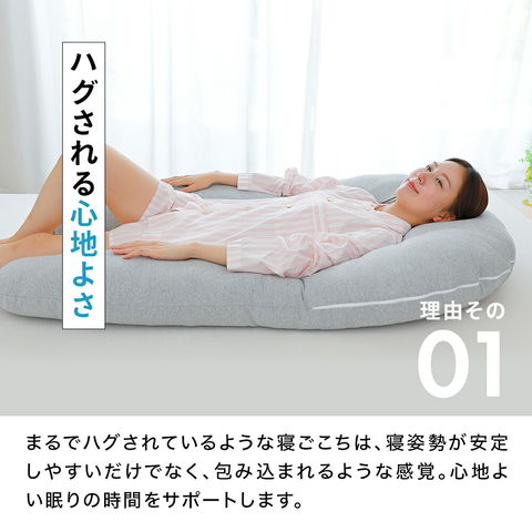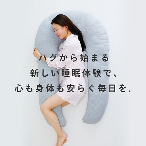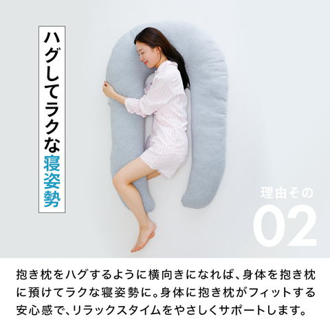 抱き枕をハグするように横向きになれば、身体を抱き枕に預けてラクな寝姿勢に。身体に抱き枕がフィットする安心感で、リラックスタイムをやさしくサポートします。